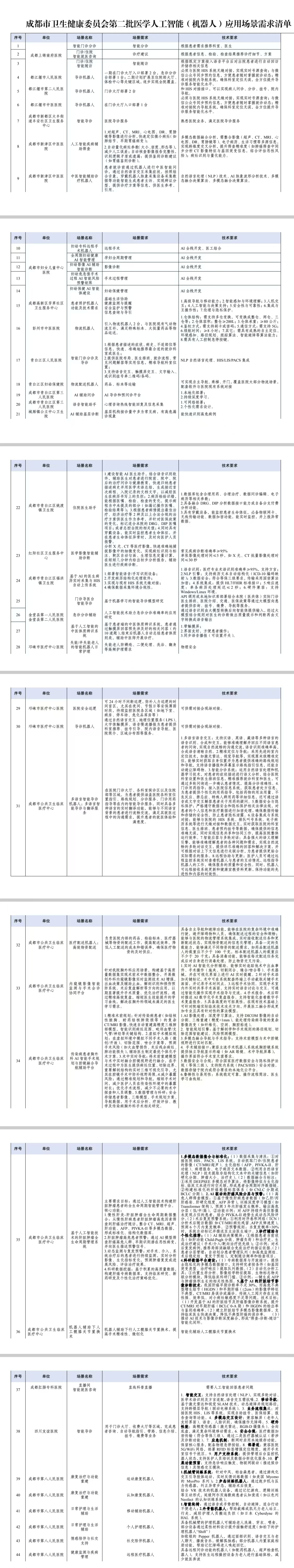 7月3日,在由成都市卫生健康委主办的医学人工智能(机器人)医企供需对接会上,发布了第二批医学人工智能(机器人)场景需求清单。