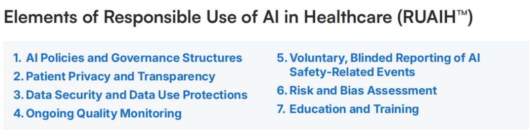2024年9月17日,美国联合委员会(The Joint Commission)和健康AI联盟(Coalition for Health AI, CHAI)发布了首份关于在医疗领域负责任地使用人工智能的联合指南,其中概述了帮助医院和医疗系统安全采用人工智能技术的原则。