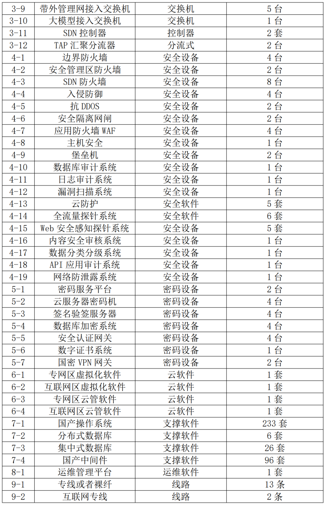 招标项目规模:本项目涵盖硬件采购、国产化成品软件采购、云平台建设、硬件部署、网络租赁及系统集成等内容。项目将统一规划服务器、存储、安全、网络等基础设施,依托国产处理器与自主可控软件体系,建设安全可靠的云平台环境,实现计算、存储、网络、安全的高效协同。通过系统集成与部署实施,形成从硬件资源到平台服务的整体解决方案,为后续业务系统运行提供稳定、可扩展的支撑环境,同步提供机房服务,具体要求详见招标需求。