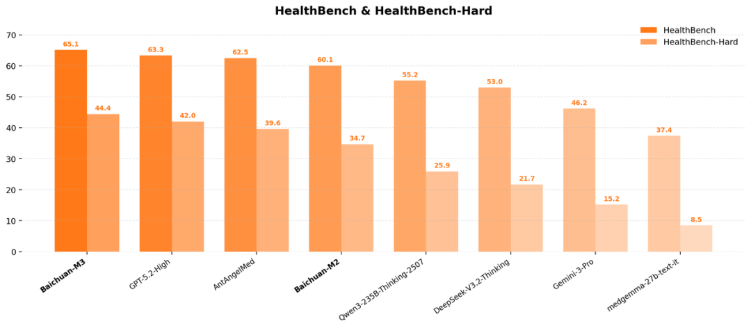 据称,其在全球最权威的医疗 AI 评测 HealthBench 中以 65.1 分的综合成绩位列全球第一,在专门考验复杂决策能力的 HealthBench Hard 上也以44.4分的成绩夺冠。