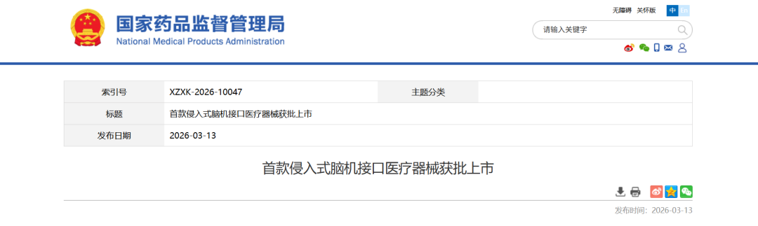 全球首证!国产侵入式脑机接口医疗器械正式获批上市