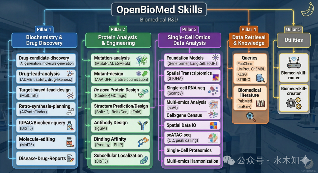 从定位上看,OpenBioMed Skills 更接近于一套能力基础设施,可以为 Agent 系统提供可调用的工具集合。