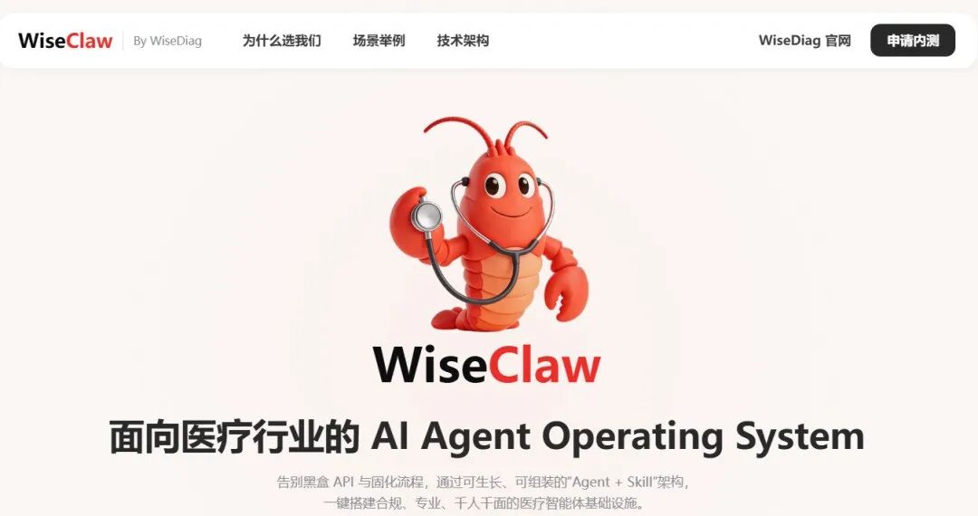 日前,智诊科技(WiseDiag)发布了企业级医疗健康行业智能体平台WiseClaw,基于 OpenClaw 架构构建,采用多智能体分工模式,面向社区与基层医疗、药店与院外处方流转、居家护理、医保与商保服务以及药械企业医学事务等多类场景。