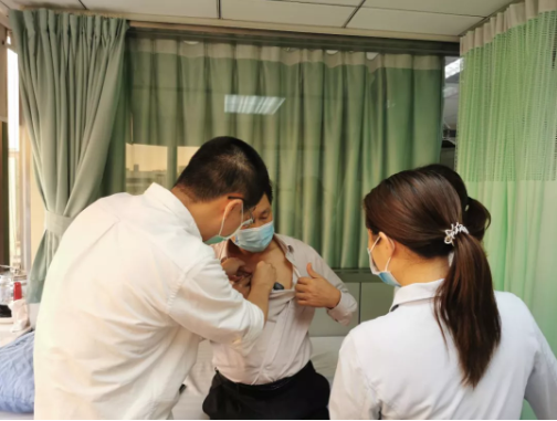 社康中心的患者使用胡桃心电穿戴设备,图片来自于胡桃医疗科技刘佩女士