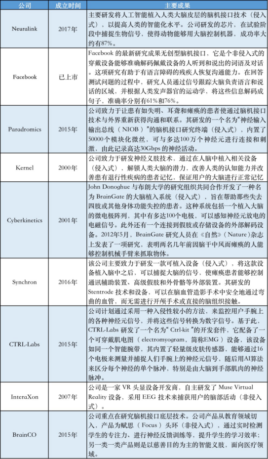 三、现有脑机接口技术国内外企业现状