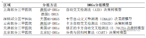 表1 部分地区医院DRGs分组器模型