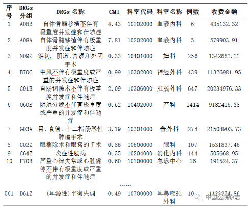 得出561项病种组相对应的CMI指数。