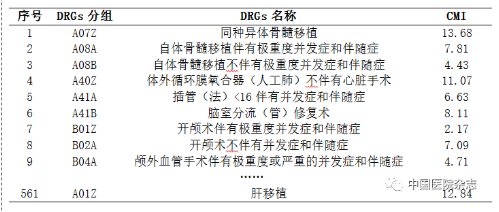 表4 部分病种组CMI匹配情况(共561组)