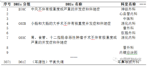 表5 部分病种组单元分组结果(共3071项)