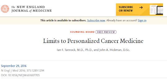 虽然个性化靶向药为患者们带来了希望,但以往的研究存在着一定缺陷。2016 年,Ian F. Tannock 和 John A. Hickman 曾在《新英格兰医学杂志》(NEJM)撰文指出,即使在单个肿瘤中,癌细胞的基因组成在不同区域之间也存在显著差异,这就是困扰科学家们的肿瘤异质性。