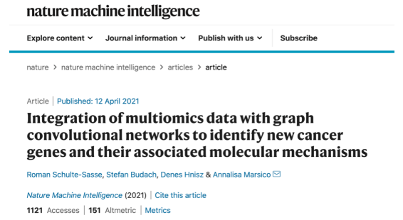 相关研究以 “Integration of multiomics data with graph convolutional networks to identify new cancer genes and their associated molecular mechanisms” 为题,于 4 月 12 日发表在科学期刊《自然-机器智能》(Nature Machine Intelligence)上。