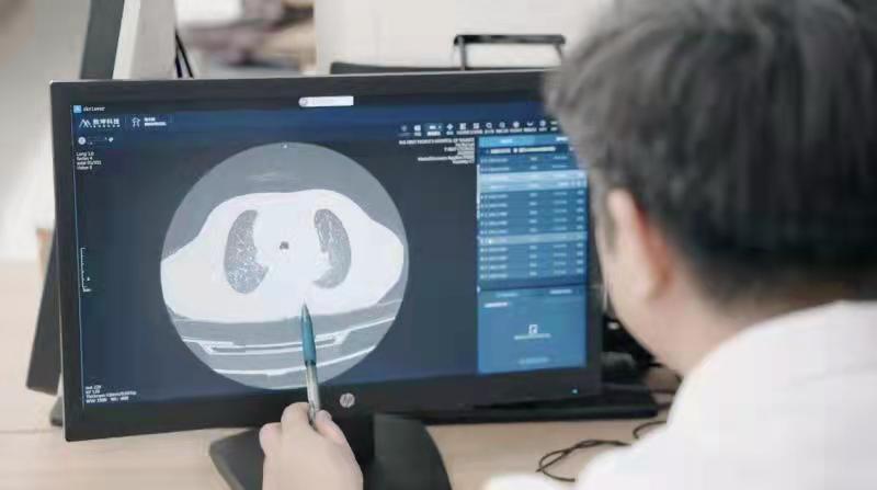 “早期肺癌的有效筛查手段是肺部CT。我们现在用人工智能可以快速检出肺结节,精准测量肺结节大小,评估良恶性,为肺结节诊断提供客观的影像数据支持,医生再对AI报告审核评估,根据指南给予患者建议。”胡秋根说,“有了AI助力,一方面不会漏诊,另一方面提高效率。”