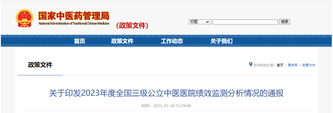 3月28日,国家中医药管理局印发《2023年度全国三级公立中医医院绩效监测分析情况通报》。