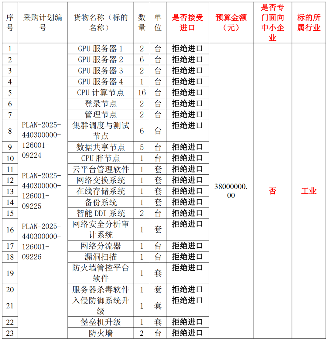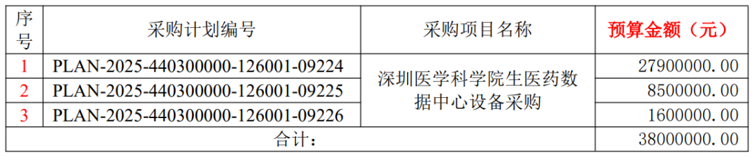 2025 年 10 月 3 日,深圳医学科学院发布《生医药数据中心设备采购》招标公告,预算 38000000.00 元。