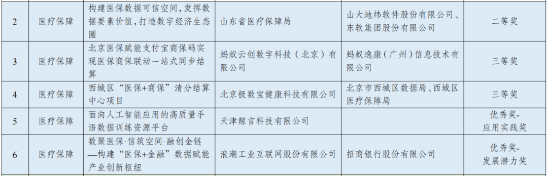 其中,医疗健康赛道共13个项目获奖。上海申康医院发展中心牵头的《上海市医疗大数据训练设施建设与数据可信流通的创新示范应用》获得一等奖。详情如下: