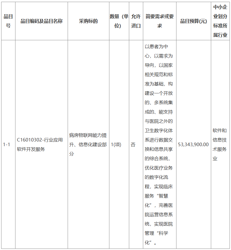 2025 年 11 月 12 日,连江县医院发布《连江县总医院病房改造及能力提升项目——信息化系统建设项目》招标公告,预算 5490.65 元。