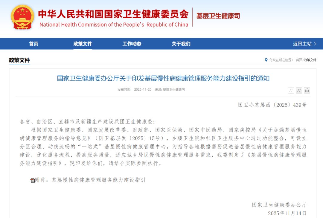 国家卫健委印发《基层慢性病健康管理服务能力建设指引》:明确信息化建设条件