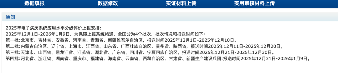 2025年电子病历系统应用水平分级评价上报安排: