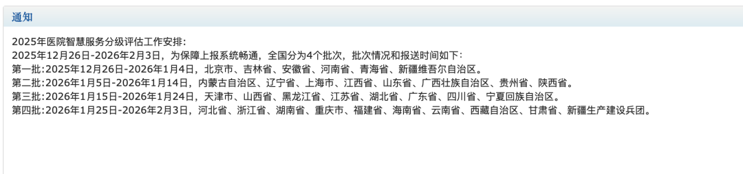 2025年12月26日-2026年2月3日,为保障上报系统畅通,全国分为4个批次,批次情况和报送时间如下: