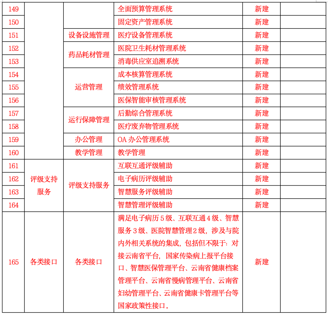 信息系统建设 165 个软件模块系统,涉及IT配套硬件设备设施包括网络设备、数据中心设备、网络安全设备、商用密码设备、软件配套设备。