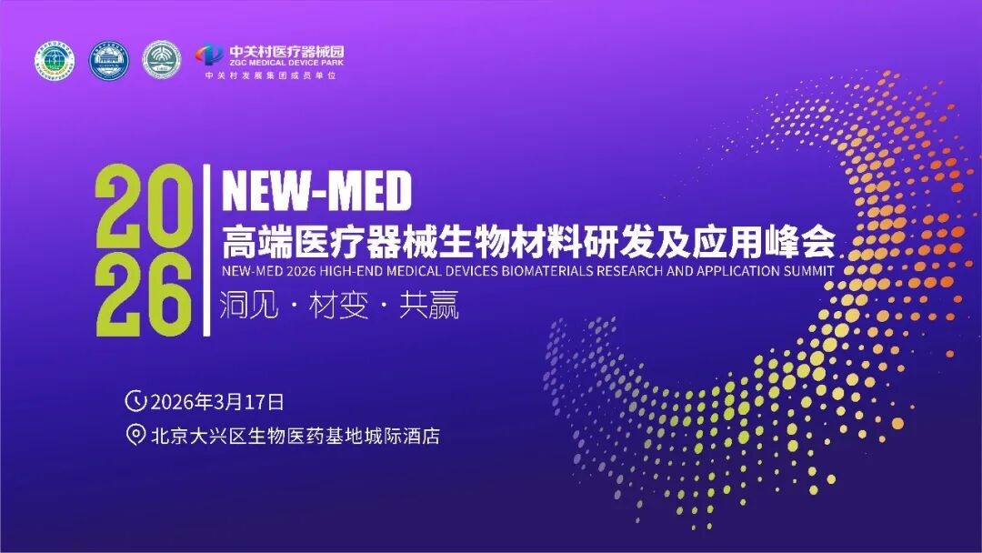 NEW-MED 2026 高端医疗器械生物材料研发及应用峰会将于2026 年 3 月 17 日在北京大兴生物医药基地城际酒店隆重举办。