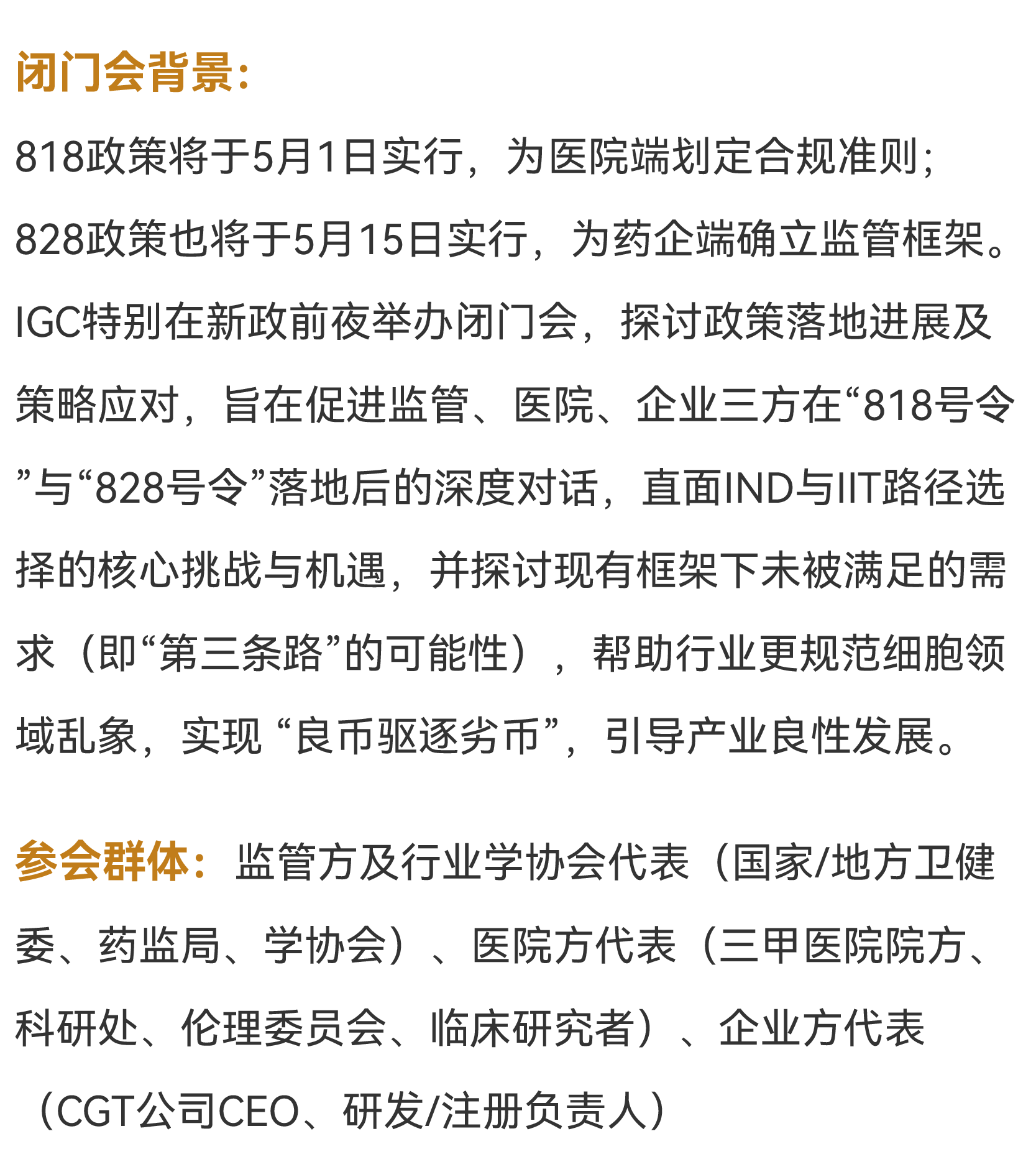 818新政前夜,CGT顶流盛会IGC2026首发议程公布!体内细胞/基因治疗/干细胞外泌体/mRNA/双轨制闭门会,2000+产业决策者4月齐聚北京