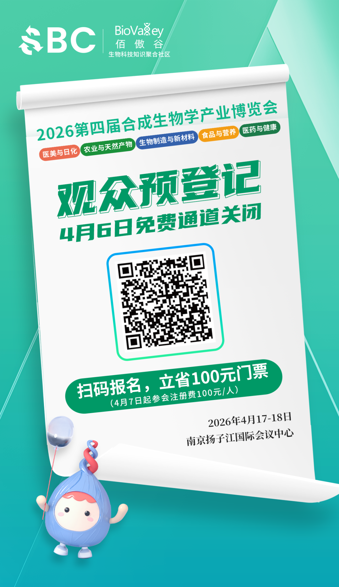 2026第四届合成生物学产业博览会(SBC2026)将于4月17-18日在南京扬子江国际会议中心召开!本届博览以“合成生物未来趋势,智造无限可能”为主题,围绕医美日化、农业与天然产物、生物制造与新材料、食品与营养、消费与健康等内容设置5大会场、14个前沿专题展开深度探讨。届时,100+位全球顶尖的专家学者、企业家与投资人,将在交流与碰撞中共同推动合成生物学从实验室走向生产线、从技术成果走向市场商品,为中国合成生物学产业的发展注入新的活力与动能。