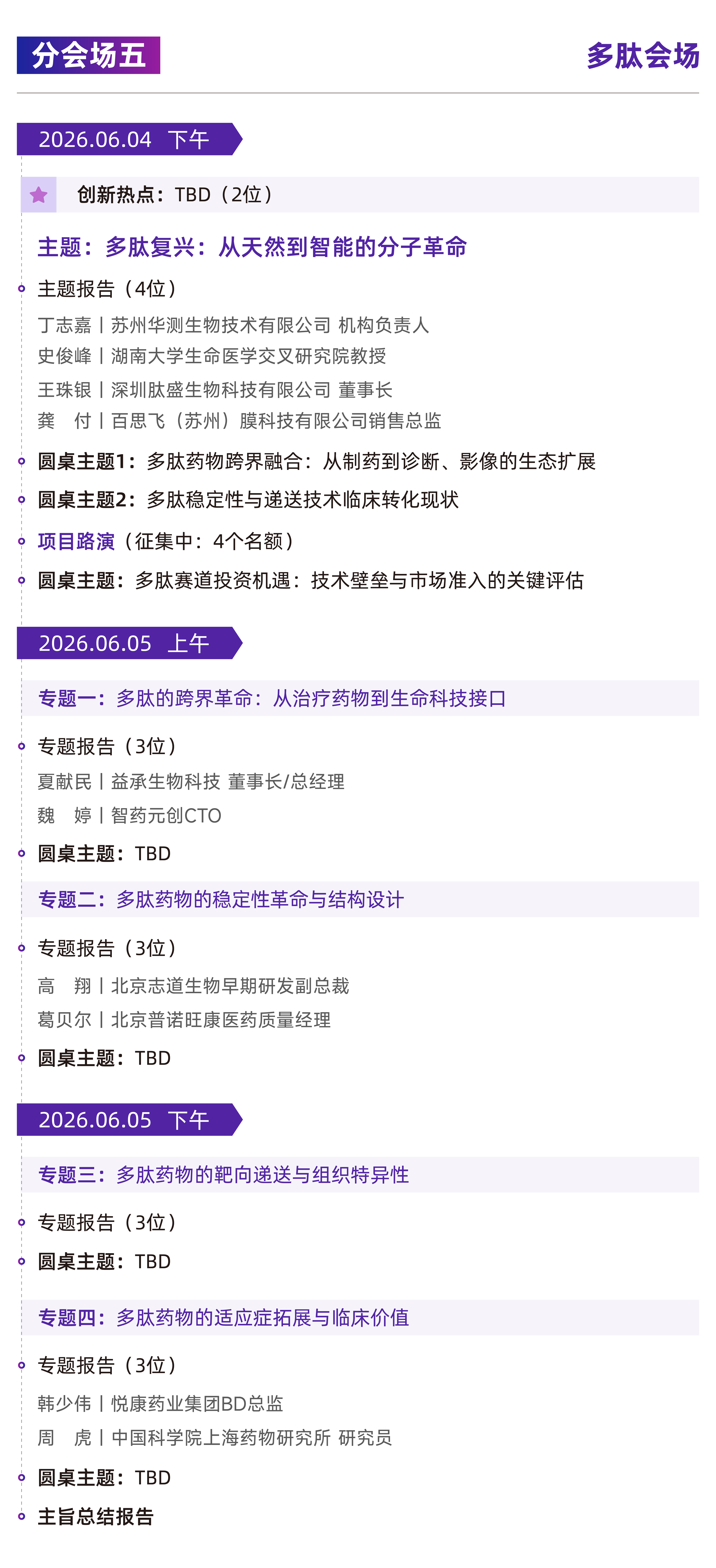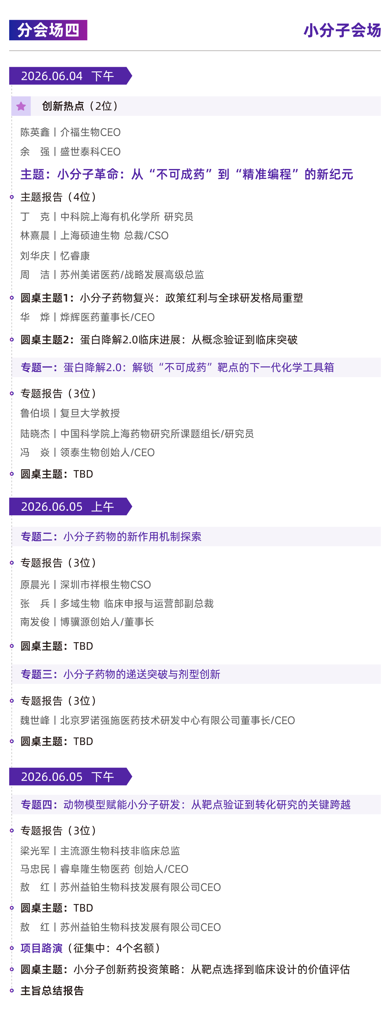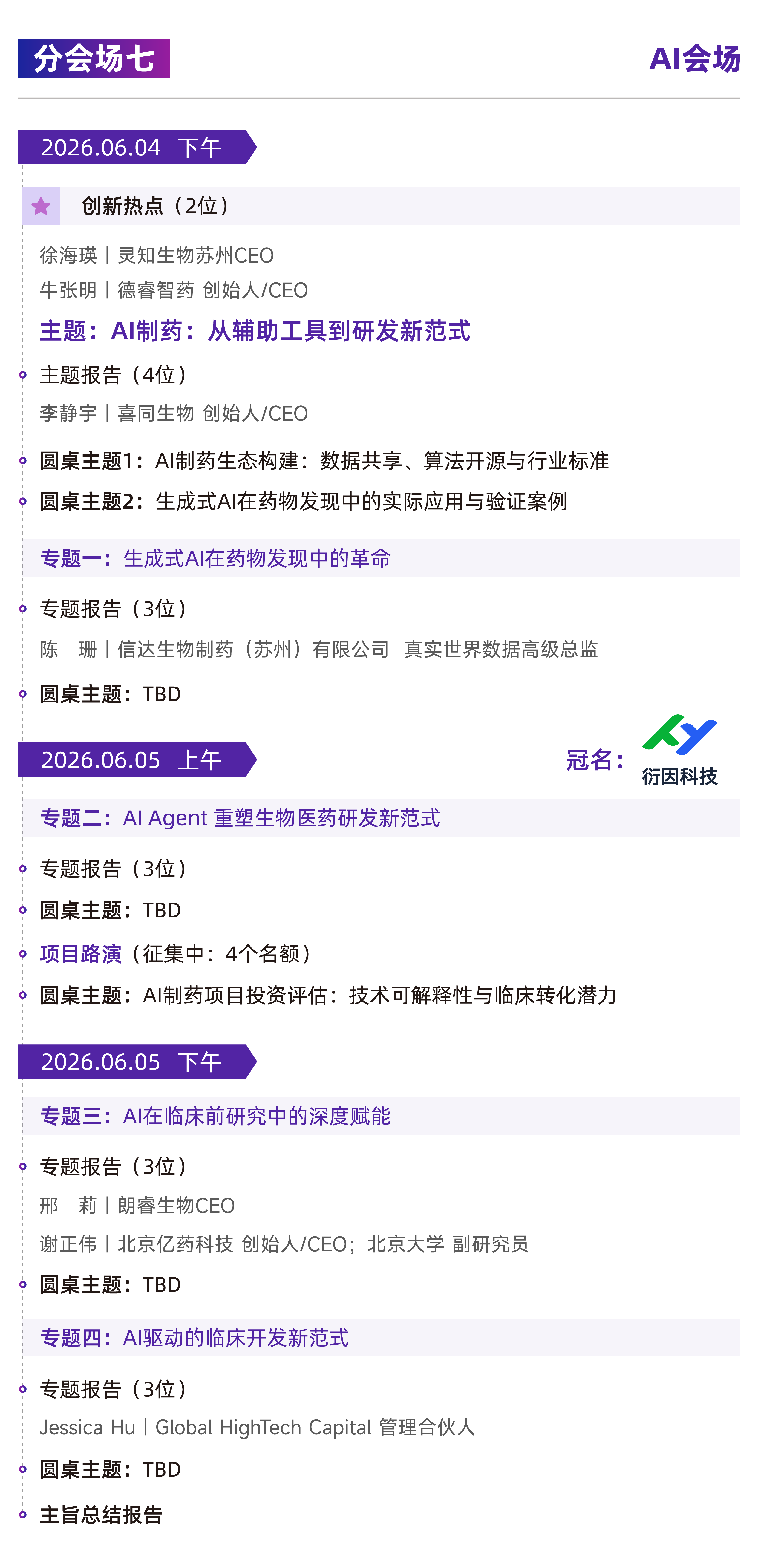 峰会现开放创新项目路演征集,将精选15家最具突破性的生物科技企业。入选企业可获得10分钟路演时段,直面产业领袖与一线投资机构,展示创新技术与商业方案,接受权威专家评审,并有机会现场对接投资意向。高效链接产业资源与资本通道。