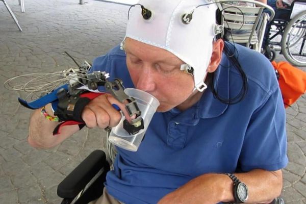 科学家们开发了一种大脑控制的机器人手,使得那些脊髓损伤的人能进行一些简单日常的操作,比如使用刀叉或用杯子喝水。