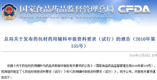 依据《关于药包材药用辅料与药品关联审评审批有关事项的公告》(国家食品药品监督管理总局2016年第134号)。