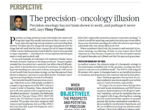 九月份有两篇把“精准医疗”推上审判台的文章引起了人们的广泛注意。一篇发表在自然杂志上; 另一篇在新英格兰医学杂志上: