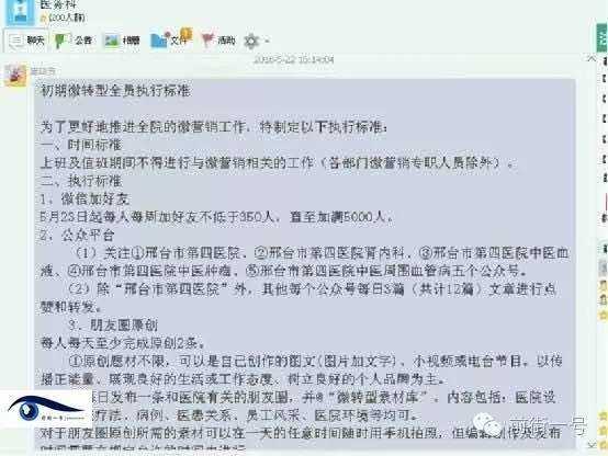 10 月 18 日,河北省邢台市第四医院一职工王大海(化名)反映,该院要求医院职工在 6 月底前加满 5000 名微信好...