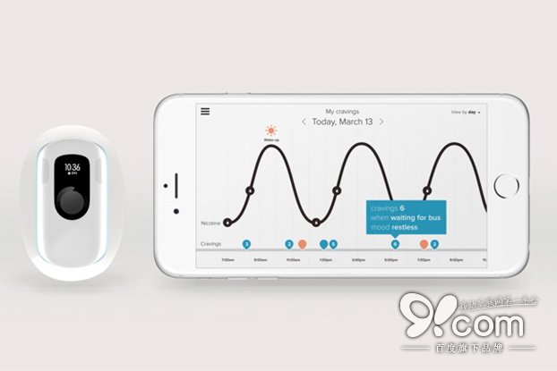 这款可穿戴设备通过蓝牙连接智能手机,发送用户是否使用设备的消息。这一信息会发给一个基于App的行为改变项目,设计这一项目...