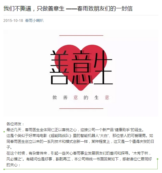 昨日,发表于今年5月份的一篇旧文《论春雨医生的倒掉》,突然刷爆了朋友圈,之后,还有几篇就春雨医生现状进行分析的文章也获得...